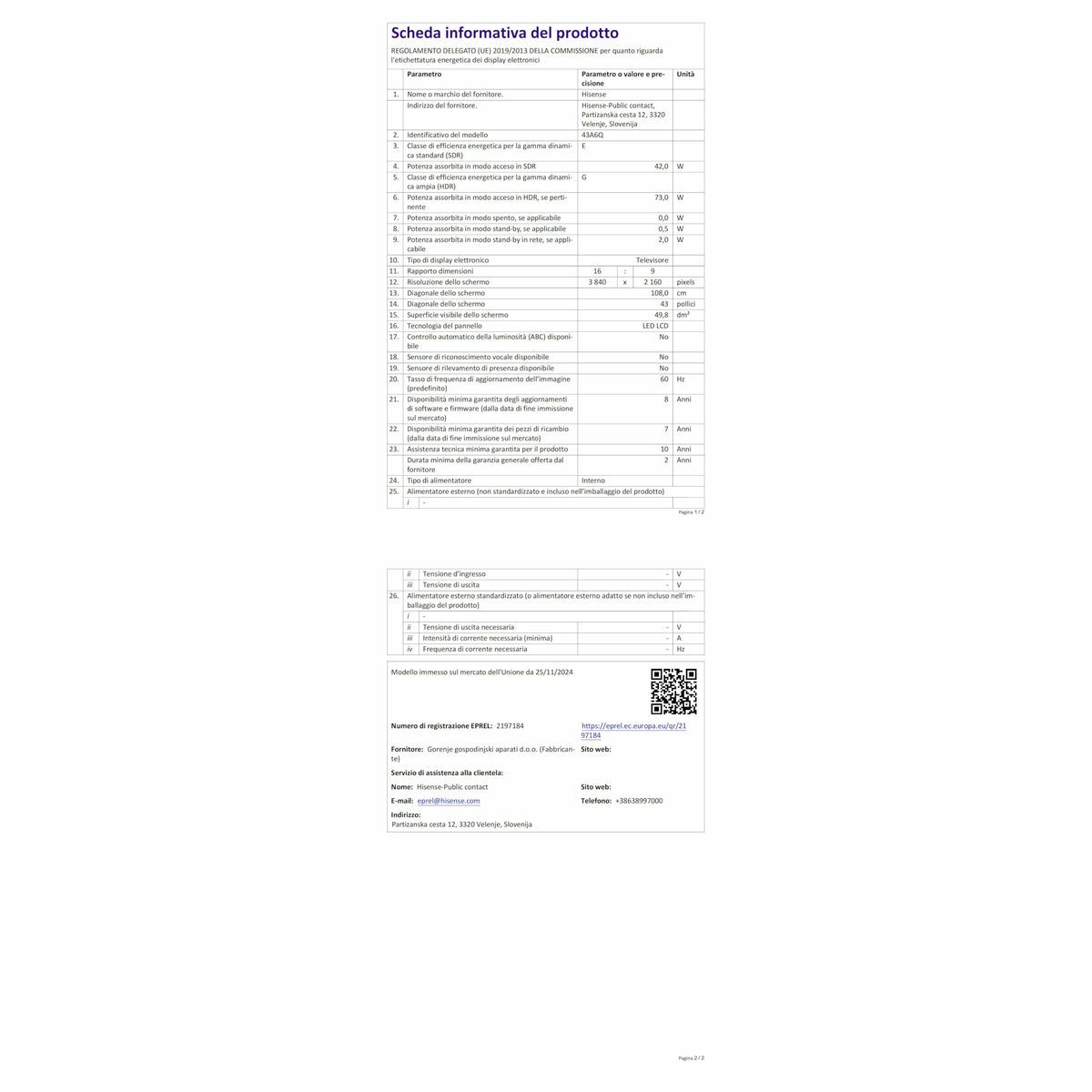 309 avis pour TV intelligente Hisense 43A6Q 43″ 4K Ultra HD LED HDR D-LED